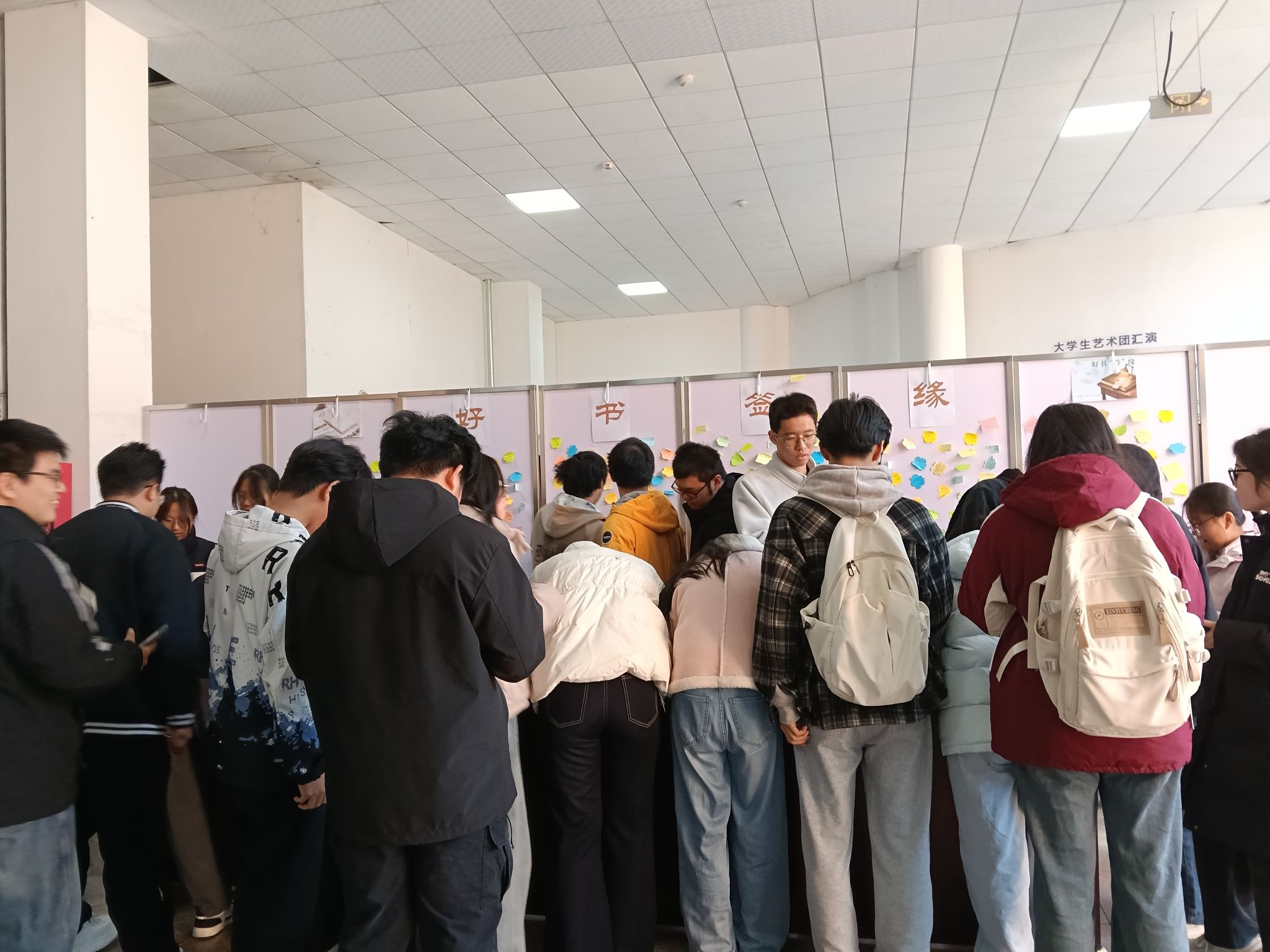 2025年11月25日,由院团委、院图文信息中心主办,读书爱好者社团承办,院社团联合会协办的“好书‘签’缘”好书分享会活动在图书馆一楼大厅圆满举行。本次活动以“一书一世界,一签一缘分”为主题,吸引了全院301名学生积极参与,共同在书香与创意交织的氛围中,开启了一场别开生面的阅读交流之旅。